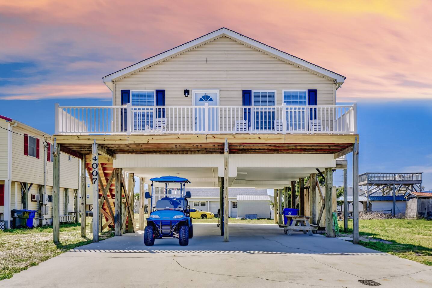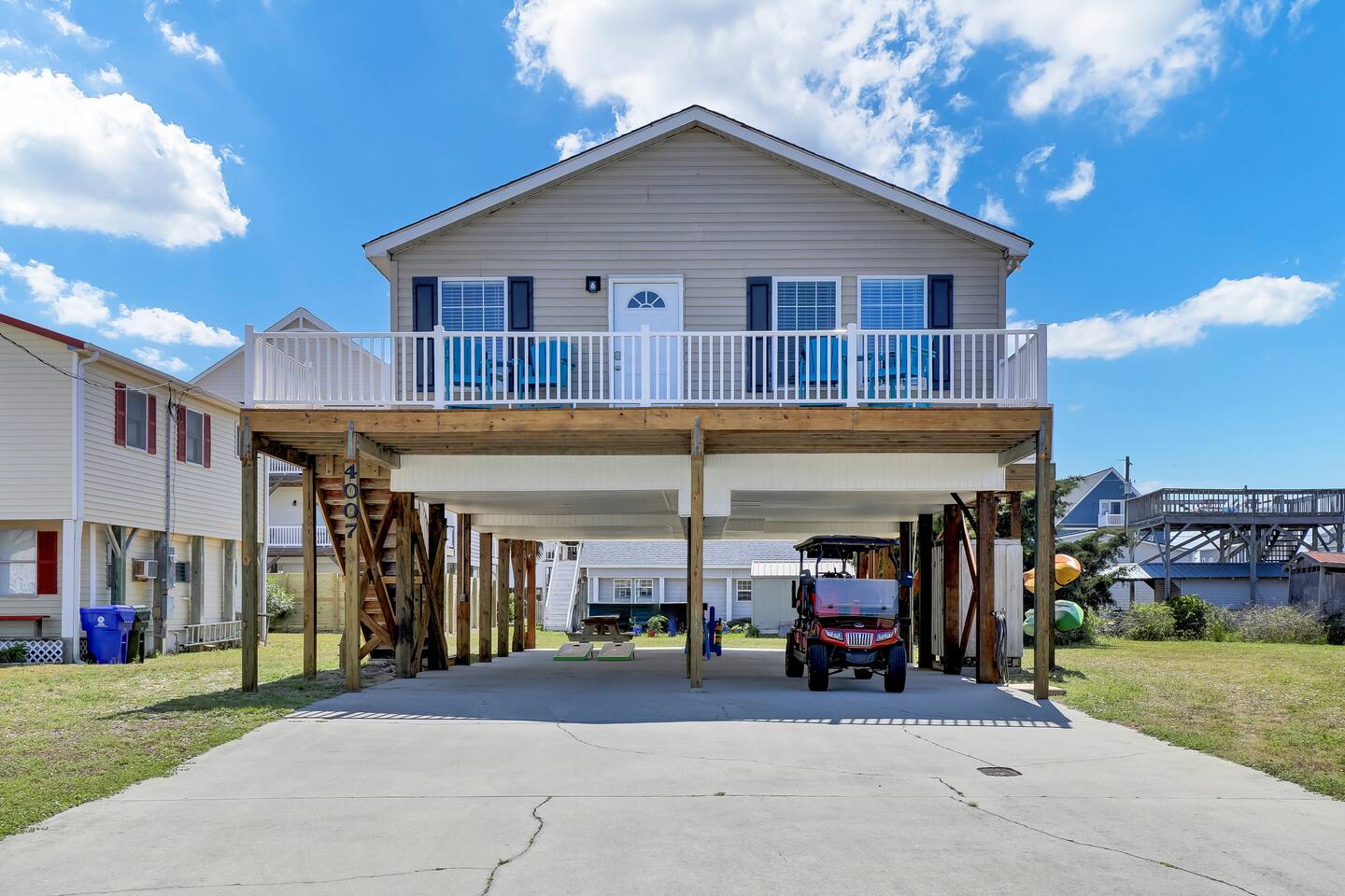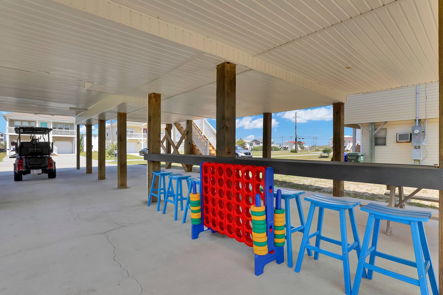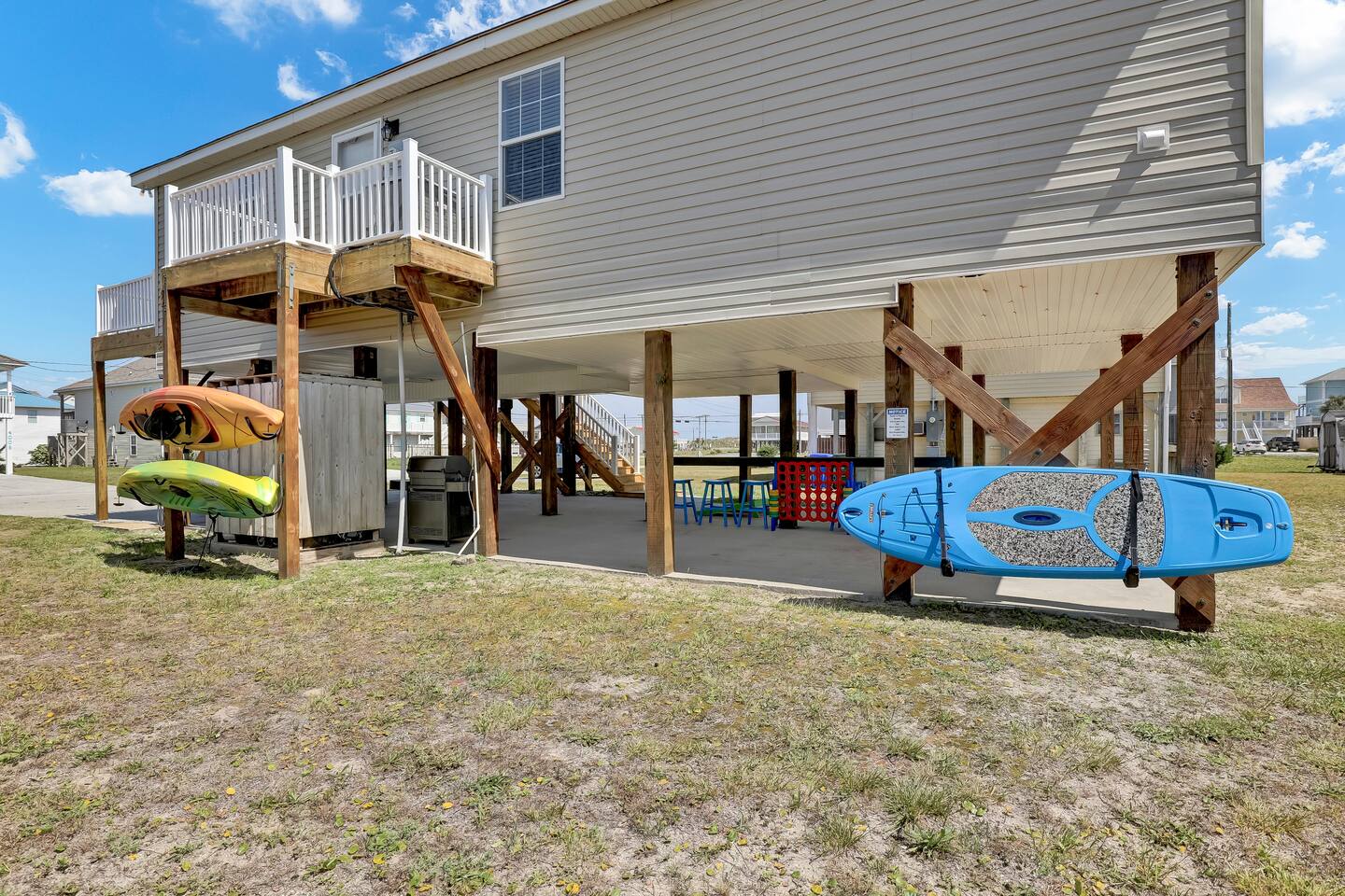 Topsail Turtle Properties! Located in the heart of Surf City, equal distance between the ocean and sound. Enjoy the new Polywood chairs on the front porch and enjoy the evenings grilling under the house with a built-in bar hang out area. Dog-friendly (pet fee $35 per day sent separately from the initial booking). The lithium 6-seater golf cart is available to rent for an additional fee. Free beach parking with the cart! Weekly Rate $425. Less than 7 nights booking $60 a day. BEDROOMS: ★ Primary bedroom King bed with private bath- newly remodeled tile shower- Roku TV in room ★2nd bedroom King bed with shared bath ★ 3rd bedroom Queen bed -shared bath- Roku TV ★ Living room Queen sleeper sofa - Roku TV Our Linen Services includes towel sets for every guest. All beds are made up prior to your arrival (sheets/comforter/pillows). AMENITIES: ★ Cruise around on the 6-seater golf cart (extra cost) ★ Pet Friendly ★ Enjoy our kayak or paddle board ★ Cornhole and beach games ★ Grill on the Weber gas grill ★ Amazing community environment - Walk to restaurants and bars. KITCHEN: Fully equipped with everything you need to cook your own meals. A Keurig and regular coffee pot are available. We provide a starter kit of K-cups, sugar and creamer. OUTDOOR SPACE: Enjoy the new outdoor bar area with seating while playing cornhole on the Margaritaville boards or grilling. Giant size connect four for evening fun. Six beach chairs, an umbrella, a beach buggy, kids sand toys and beach toys (Kan Jam, Spike ball) available for use. Try out the new polywood chairs on the deck.