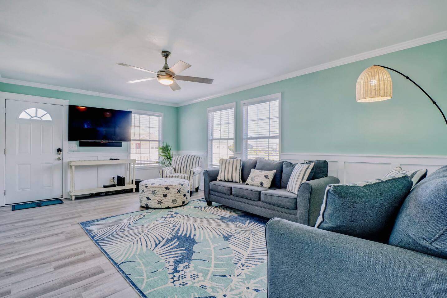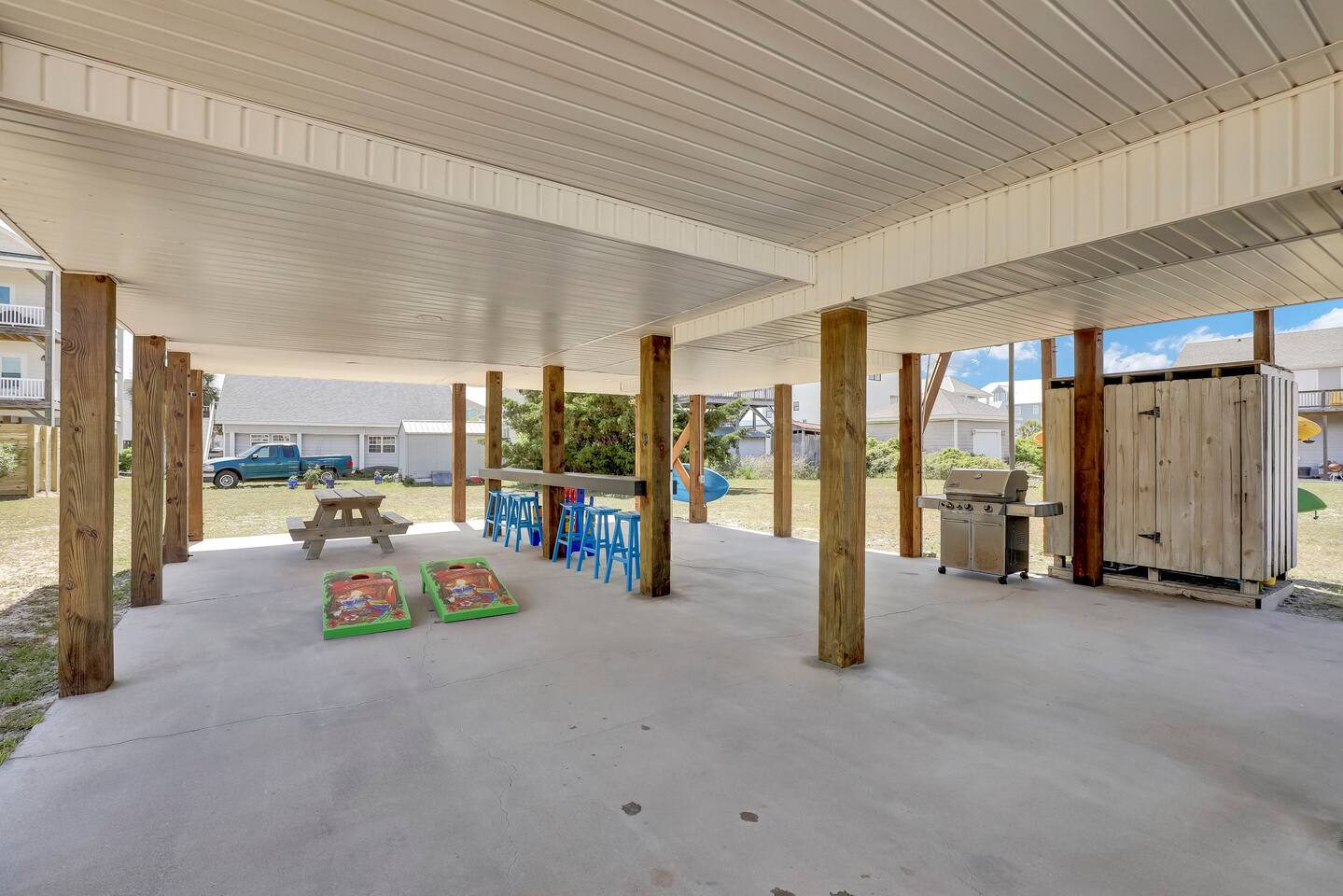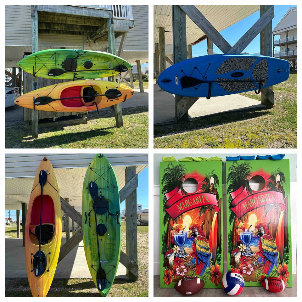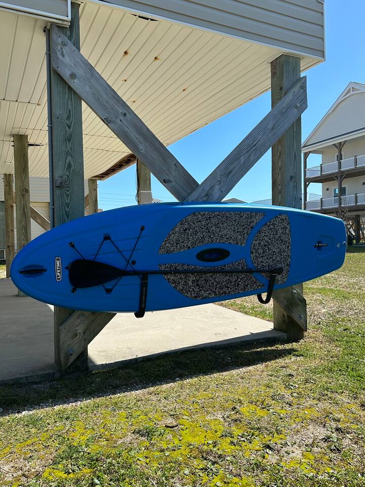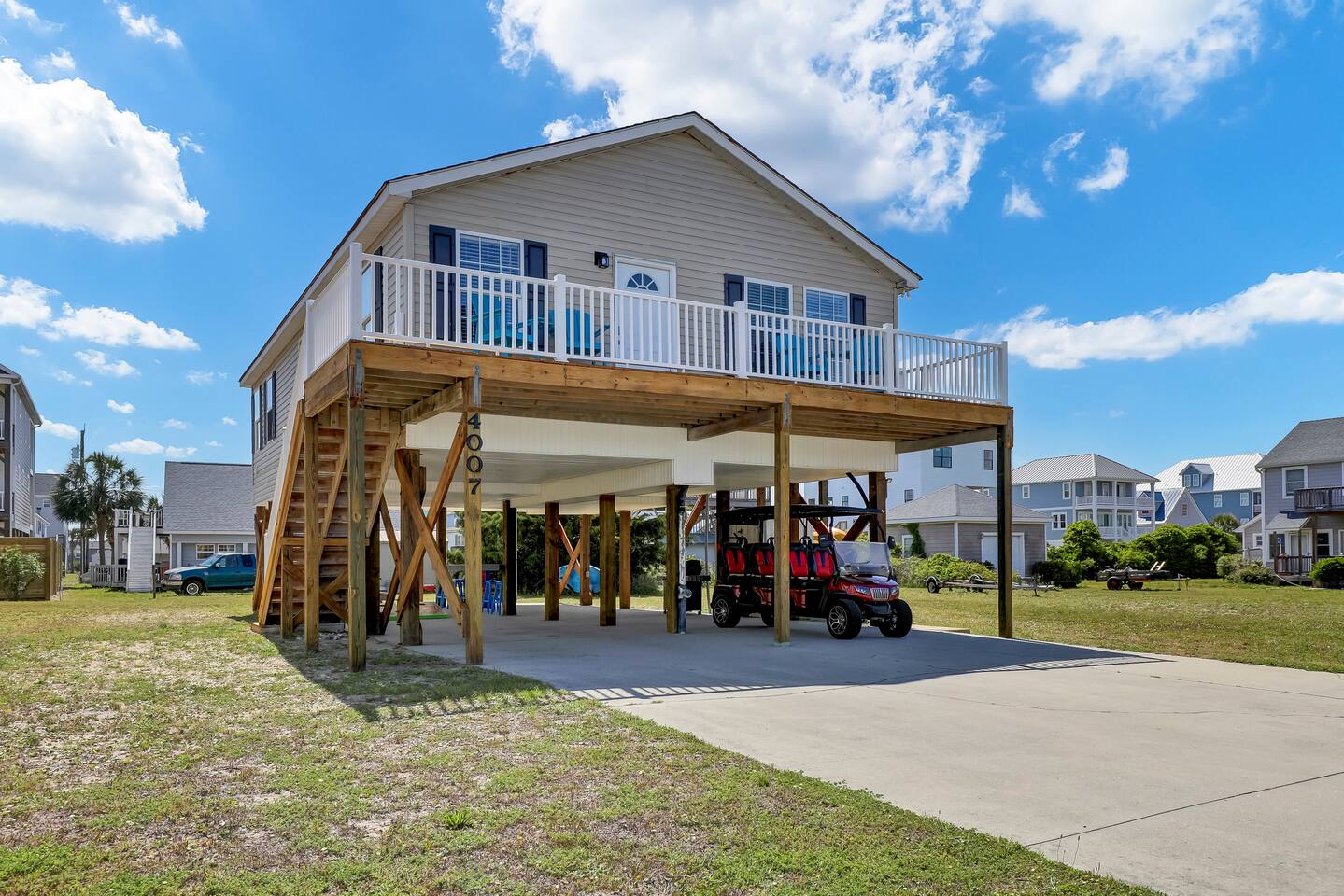 Topsail Turtle Properties! Located in the heart of Surf City, equal distance between the ocean and sound. Enjoy the new Polywood chairs on the front porch and enjoy the evenings grilling under the house with a built-in bar hang out area. Dog-friendly (pet fee $35 per day sent separately from the initial booking). The lithium 6-seater golf cart is available to rent for an additional fee. Free beach parking with the cart! Weekly Rate $425. Less than 7 nights booking $60 a day. BEDROOMS: ★ Primary bedroom King bed with private bath- newly remodeled tile shower- Roku TV in room ★2nd bedroom King bed with shared bath ★ 3rd bedroom Queen bed -shared bath- Roku TV ★ Living room Queen sleeper sofa - Roku TV Our Linen Services includes towel sets for every guest. All beds are made up prior to your arrival (sheets/comforter/pillows). AMENITIES: ★ Cruise around on the 6-seater golf cart (extra cost) ★ Pet Friendly ★ Enjoy our kayak or paddle board ★ Cornhole and beach games ★ Grill on the Weber gas grill ★ Amazing community environment - Walk to restaurants and bars. KITCHEN: Fully equipped with everything you need to cook your own meals. A Keurig and regular coffee pot are available. We provide a starter kit of K-cups, sugar and creamer. OUTDOOR SPACE: Enjoy the new outdoor bar area with seating while playing cornhole on the Margaritaville boards or grilling. Giant size connect four for evening fun. Six beach chairs, an umbrella, a beach buggy, kids sand toys and beach toys (Kan Jam, Spike ball) available for use. Try out the new polywood chairs on the deck.