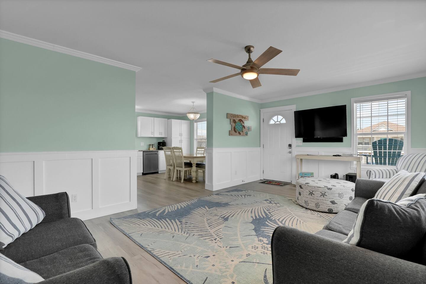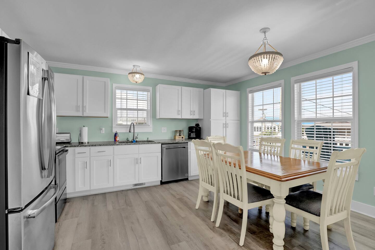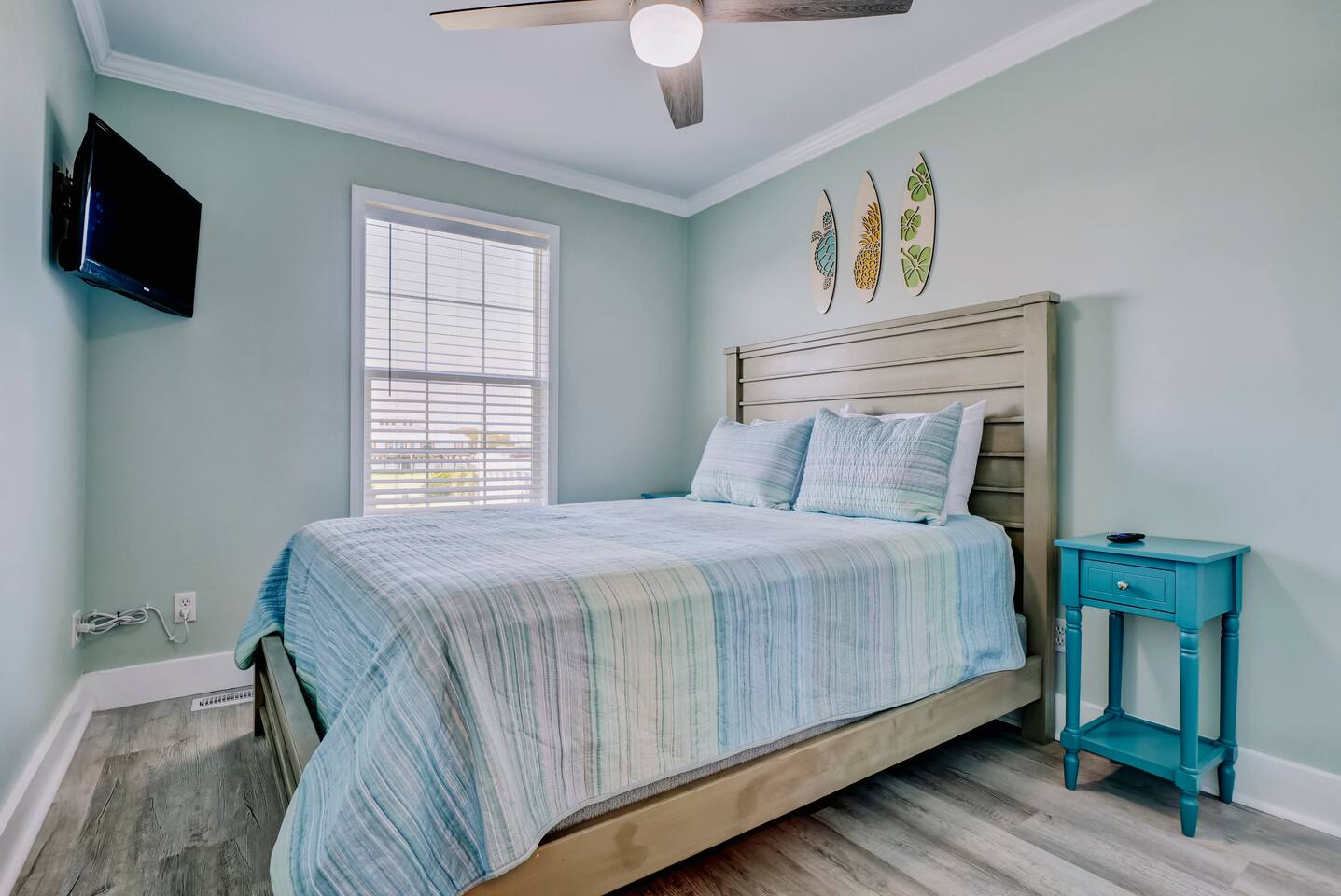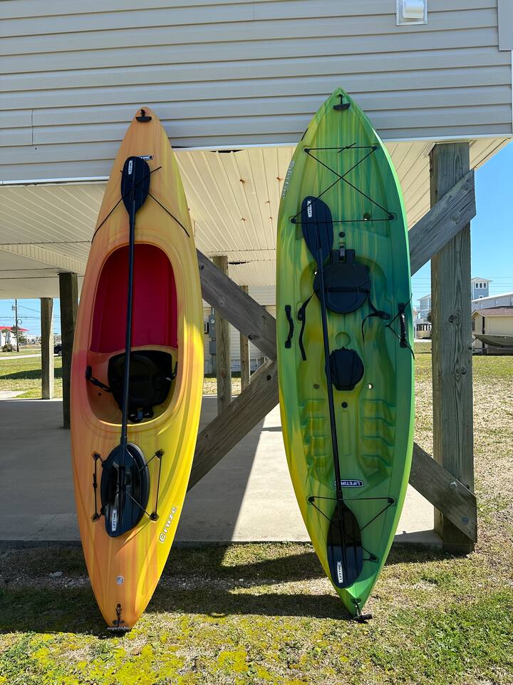 Topsail Turtle Properties! Located in the heart of Surf City, equal distance between the ocean and sound. Enjoy the new Polywood chairs on the front porch and enjoy the evenings grilling under the house with a built-in bar hang out area. Dog-friendly (pet fee $35 per day sent separately from the initial booking). The lithium 6-seater golf cart is available to rent for an additional fee. Free beach parking with the cart! Weekly Rate $425. Less than 7 nights booking $60 a day. BEDROOMS: ★ Primary bedroom King bed with private bath- newly remodeled tile shower- Roku TV in room ★2nd bedroom King bed with shared bath ★ 3rd bedroom Queen bed -shared bath- Roku TV ★ Living room Queen sleeper sofa - Roku TV Our Linen Services includes towel sets for every guest. All beds are made up prior to your arrival (sheets/comforter/pillows). AMENITIES: ★ Cruise around on the 6-seater golf cart (extra cost) ★ Pet Friendly ★ Enjoy our kayak or paddle board ★ Cornhole and beach games ★ Grill on the Weber gas grill ★ Amazing community environment - Walk to restaurants and bars. KITCHEN: Fully equipped with everything you need to cook your own meals. A Keurig and regular coffee pot are available. We provide a starter kit of K-cups, sugar and creamer. OUTDOOR SPACE: Enjoy the new outdoor bar area with seating while playing cornhole on the Margaritaville boards or grilling. Giant size connect four for evening fun. Six beach chairs, an umbrella, a beach buggy, kids sand toys and beach toys (Kan Jam, Spike ball) available for use. Try out the new polywood chairs on the deck.